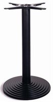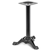 Подстолье металлическое, облегченное. Основание - черное порошковое покрытие. Гладкое, матовое. Труба металлическая D76. Верхние фланцы 25х25 см. Рекомендуемый максимальный размер столешниц: 1200х800.