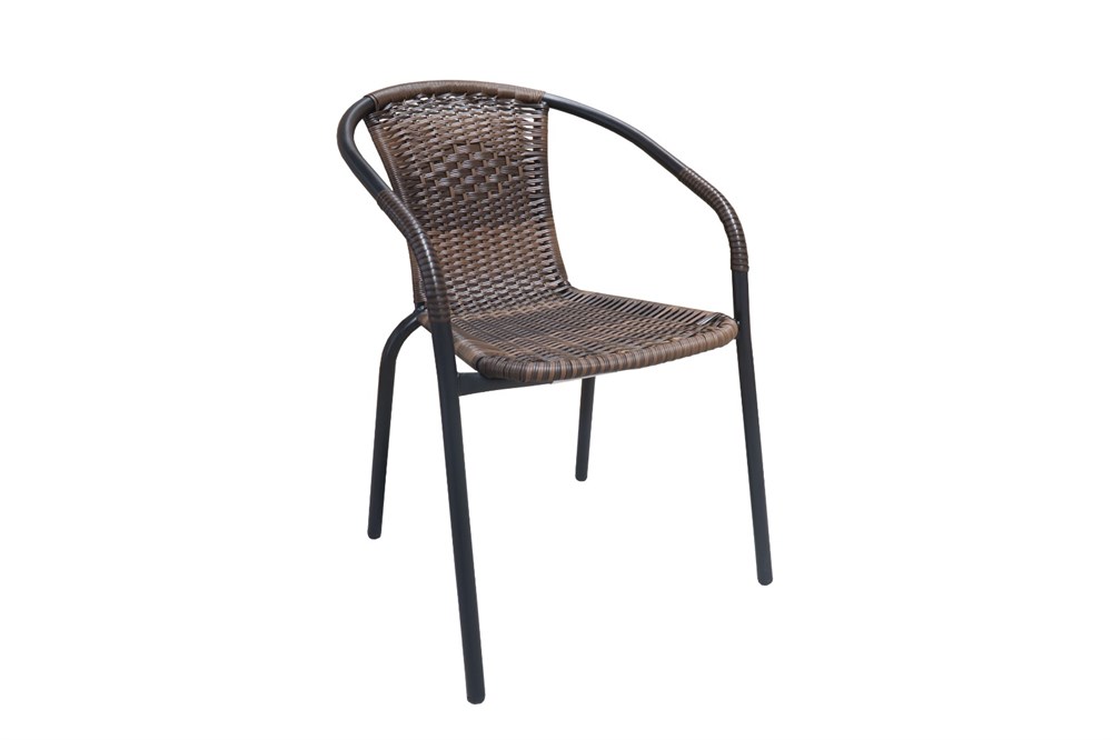 Каркас-стальной, окрашен черной порошковой краской, цвет -черный. спинка и сиденье -плетение ПВХ, цвет -капучино.