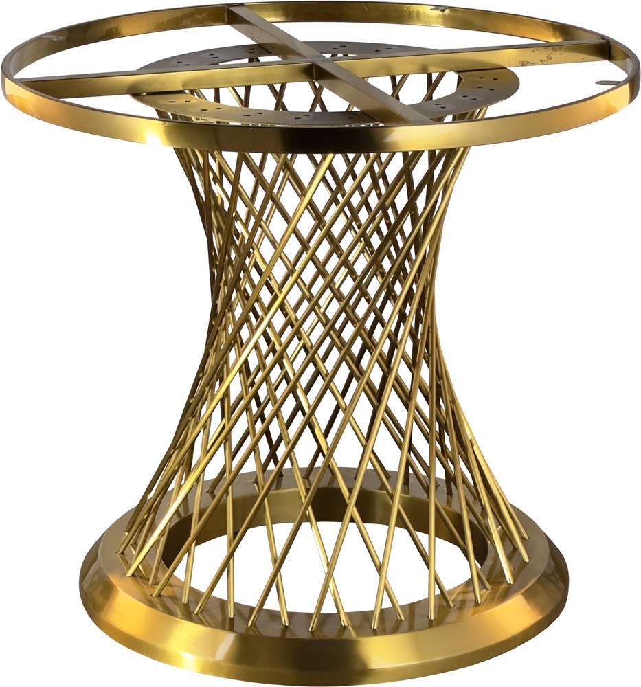 Подстолье из полированной нержавеющей стали (золотое). Лаковое. Диаметр верхней тарелки - 800/1000/1200. Рекомендуемый размер столешницы: D1200/1400/1600